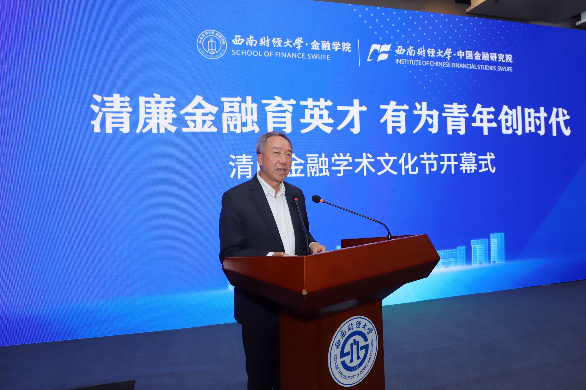 卓志在致辞中表示,要坚持以中国特色金融文化为引领,构筑风清气正的金融发展环境;充分利用好学校金融学科优势与人才优势,弘扬“经世济民、孜孜以求”的精神内核,立志兴学报国,传承深厚金融力量。学校与国家金融监督管理总局四川监管局开启共建了“清廉金融教育基地”,在打造育人模式、编写廉洁教材、建设清廉品牌等方面取得一系列成效,涵育了金融历史廉韵,弘扬了先进文化;希望通过清廉金融学术文化节的创新平台,推动清廉金融深度发展,欢迎并期待继续携手四川监管局、社会各界,以新时代廉洁文化建设为责任担当、价值引领,广泛深入开展合作,实现资源共享、优势互补,打造清廉之风,筑牢风清气正生态,共同建设金融强国。
