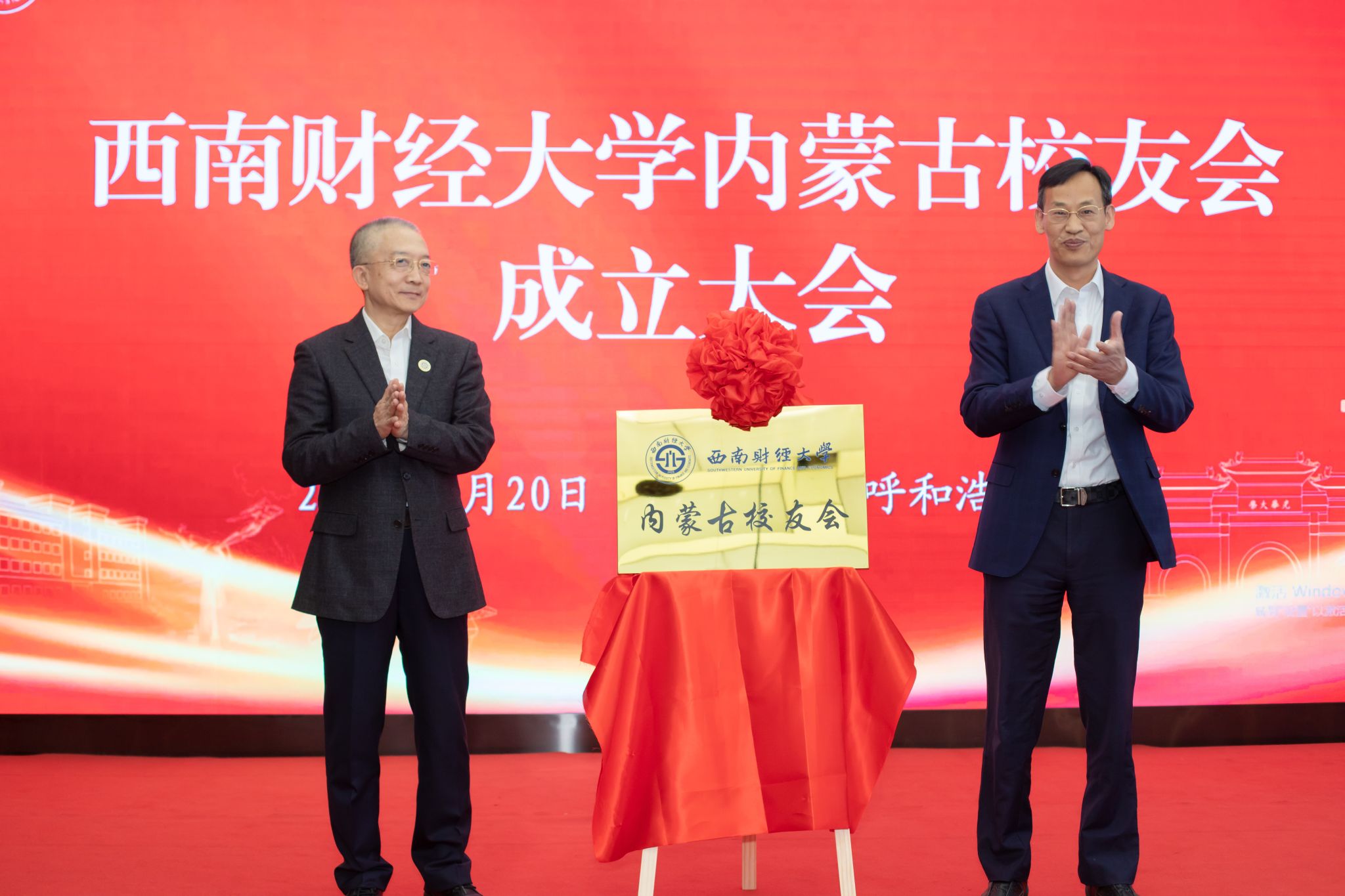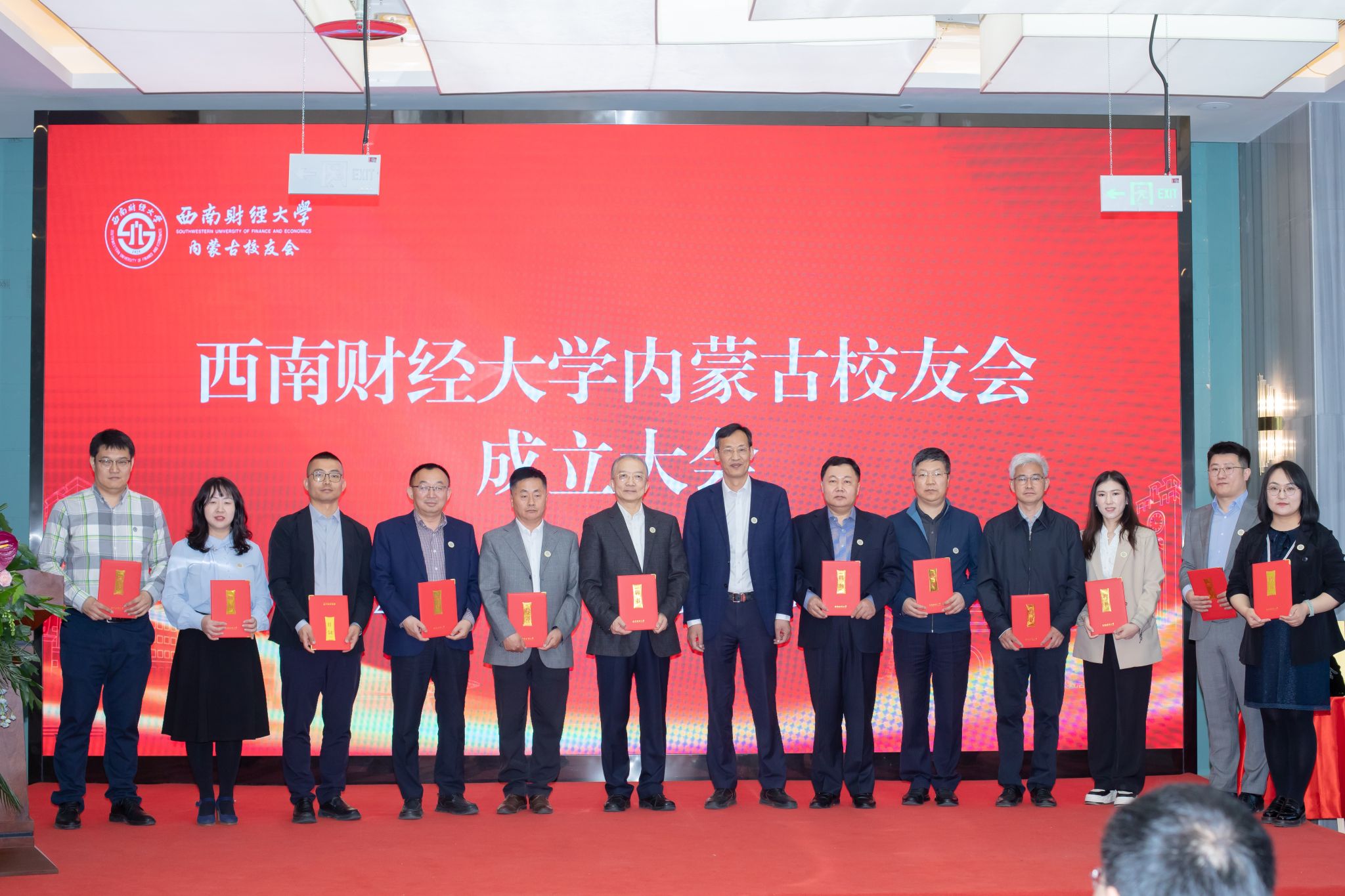 会上宣读了《关于成立西南财经大学内蒙古校友会的批复》和内蒙古校友会第一届理事会成员名单,举行了内蒙古校友会揭牌、授旗仪式,为内蒙古校友会第一届理事会成员颁发聘书并互赠礼物。