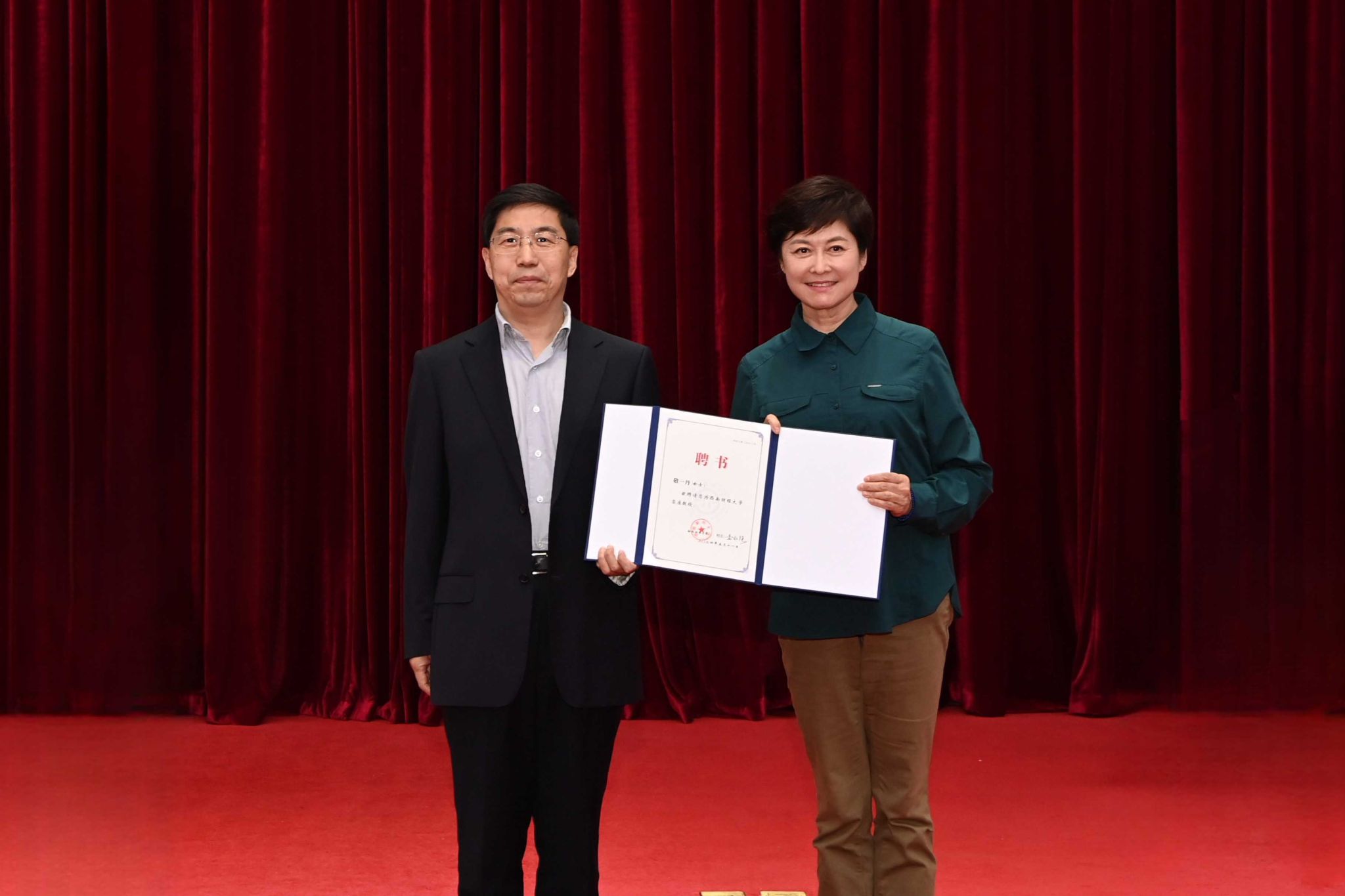 根据人才培养和学科建设需要,学校聘任敬一丹为客座教授。敬一丹欣然应允。讲座前,赵建军为敬一丹颁发西南财经大学客座教授聘书。