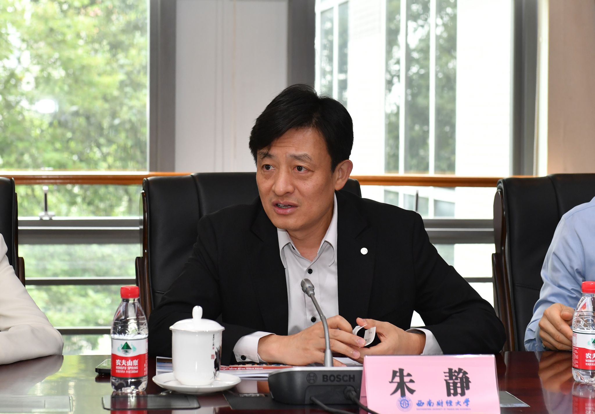 朱静介绍了招商银行发展历程及近年来建设“金融科技银行”最新进展。他表示,西南财经大学作为“中国金融人才库”,以独特的金融行业背景和出色的金融学科优势,为国家金融、经济、管理等部门培养和输送了大量优秀人才,一大批西财校友扎根招行,以其突出的专业素养和工作能力成长为招行的中坚骨干。希望通过此次调研,双方建立更加高效的沟通对接机制,进一步深化拓展交流合作领域。