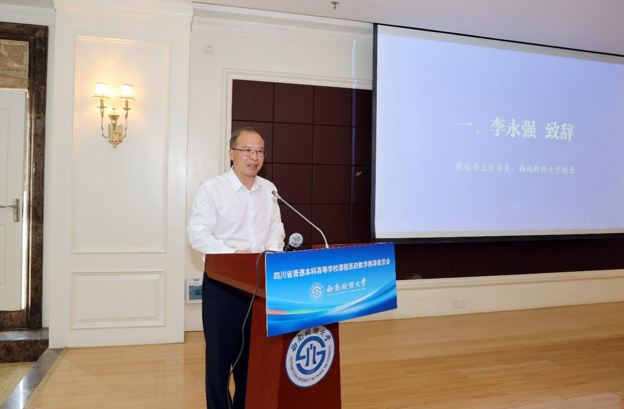 李永强代表学校欢迎与会领导专家。他介绍了学校积极构筑“经世济民”课程新谱系、创建“双向反哺”教学新范式、健全“系统集成”育人新机制,致力打造课程思政建设的西财品牌,着力培养知中国、爱中国、担当民族复兴重任的新时代财经人才情况。他指出,四川省普通本科高等学校课程思政教学指导委员会成立,是贯彻落实习近平总书记有关要求的同题共答与合力探索,要充分发挥各类课程的育人功能,追求课程工具理性和价值理性统一、教书与育人统一、知识本位和人格本位统一,为培养更多让党放心、爱国奉献、担当民族复兴重任的时代新人汇聚四川高等教育合力。李永强强调,持续推动课程思政高质量发展要注重把握三个重点。要进一步鲜明课程思政育人导向,通过有思想的凝心铸魂、有方向的价值引领、有灵魂的启智润心,寓社会主义核心价值观引导于知识传授和能力培养之中,引导学生将实现个人价值与国家发展、民族复兴紧密相连。要创新拓展课程思政的建设路径,“一体化”推动构建大中小思想政治教育共同体,“联动化”推动打造高校课程思政教学共同体,“制度化”推动实现高校课程思政持续发展,守正创新推动课程思政高质量发展。要充分发挥教指委作为咨询团、协调员、赋能者的牵引带动作用,提升咨询参谋能力,推动跨校合作,搭建共建共享平台,推动不同类型课程思政发生“化学反应”,产生协同育人综合效应。