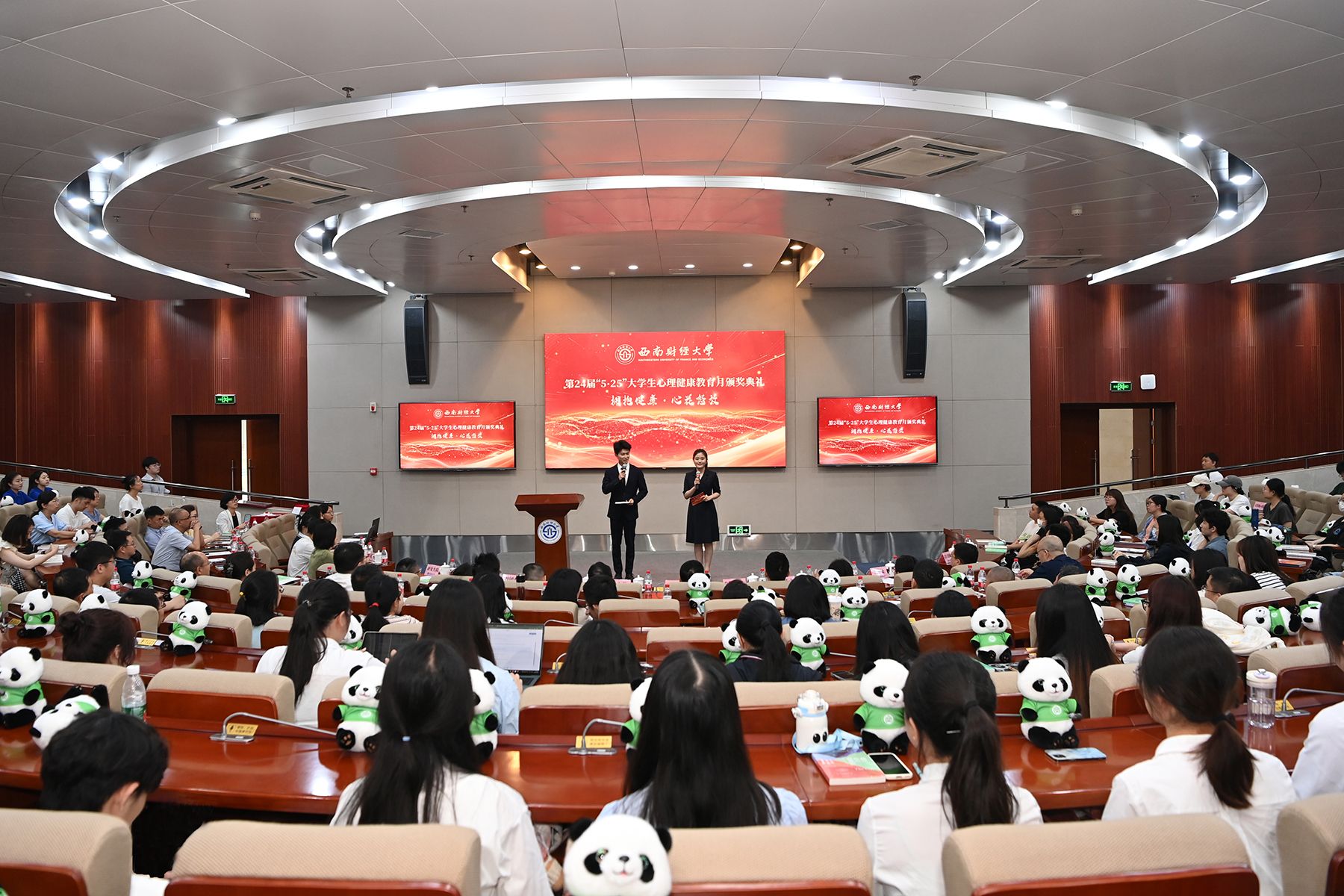 典礼集中展示了心理健康教育月活动开展情况、优秀集体和个人先进事迹,为主题征文比赛和校园心理剧比赛获奖队伍、优秀学生心理干部十佳先进个人、学生心理工作特殊贡献奖获奖者颁奖。会计学院学生工作负责人代表首批学院(研究院)心理工作示范站作交流发言,国际商学院本科生孙宇阳代表优秀学生心理干部作交流发言。