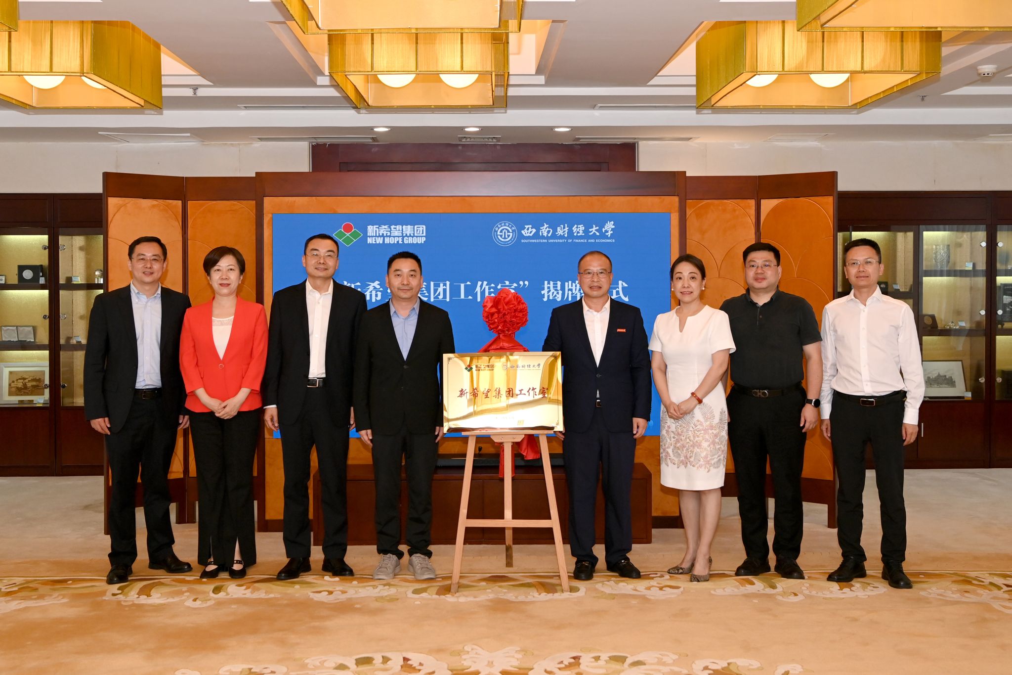 6月4日,西南财经大学-新希望集团“名企工作室”揭牌仪式在柳林校区腾骧楼521会议室举行。新希望集团常务副总裁兼首席运营官李建雄、首席财务官杨芳、人力资源总监胡劲松,学校党委副书记、校长李永强,党委常委、副校长马永强,学生职业规划与就业指导中心、国内合作与发展处、会计学院相关负责人出席揭牌仪式。