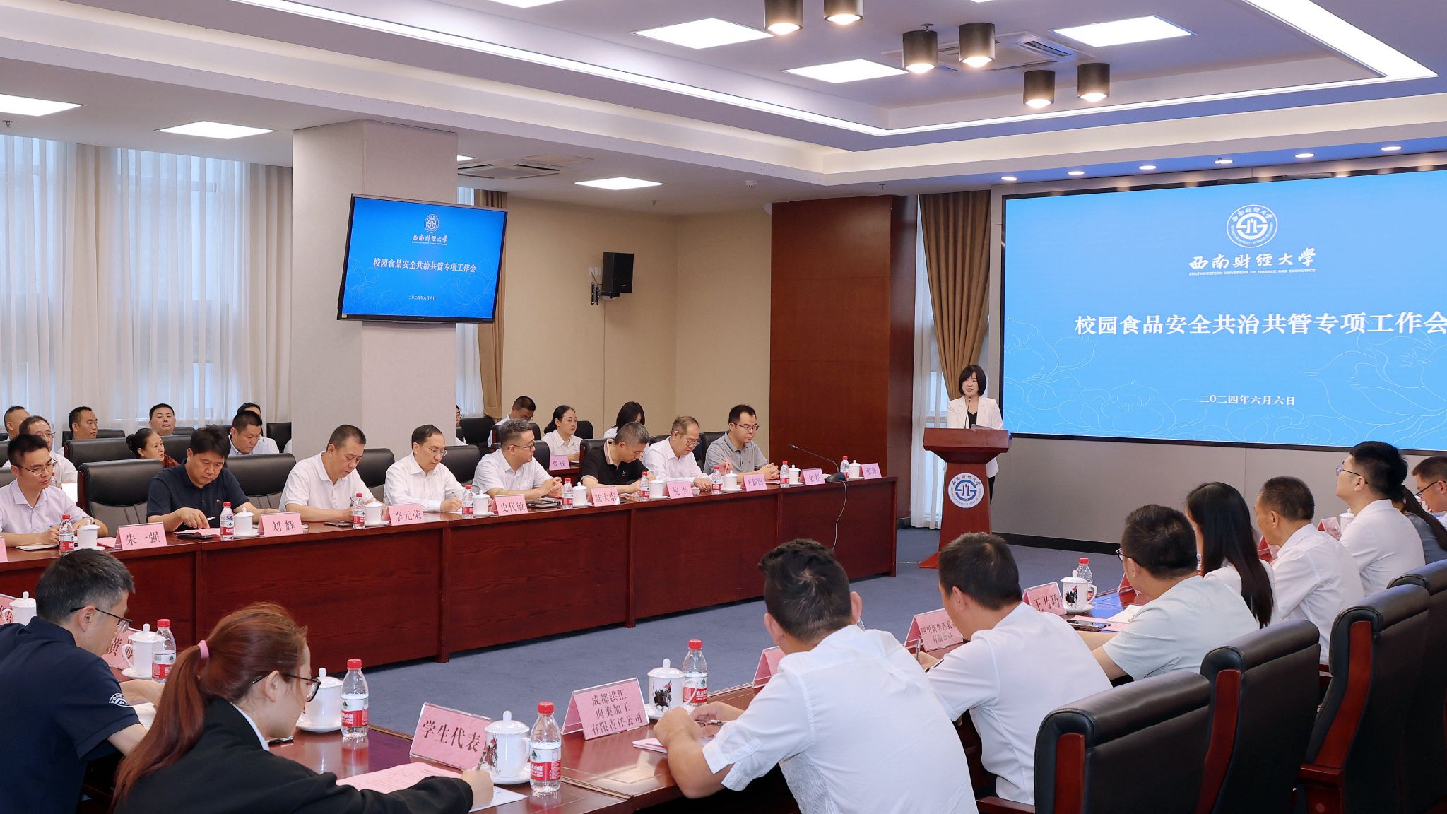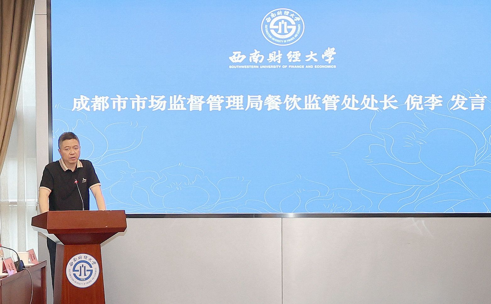 史代敏指出,此次会议是全面落实习近平总书记关于“四个最严”重要要求,认真贯彻国家市场监督管理总局、教育部、公安部、国家卫生健康委员会等上级部门文件精神和学校党委食品安全工作部署,落实落细四川省、成都市和属地管理部门关于食品安全治理工作要求,扎实推进党纪学习教育落地见效的重要举措。他强调,学校认真落实主体责任,坚持机制创新,严格过程管理,在校园食品安全管理和廉政建设方面取得良好成效,这是学校党委坚强领导、属地政府和行业监管部门有力指导、供应单位大力支持和全体西财饮食人奋斗奉献的结果。要充分认识到保障校园食品安全既是政治性很强的业务,也是业务性很强的政治,必须提高政治站位,坚持齐抓共管,层层传导责任压力。要以钉钉子精神扎实抓好食品安全问题治理,进一步完善学校食品安全管理长效机制,打通责任落实“最后一公里”。要持续巩固风清气正政治生态和廉洁服务环境,深度结合党纪学习教育,在食品安全管理中务必做到遵规守纪、廉洁自律。