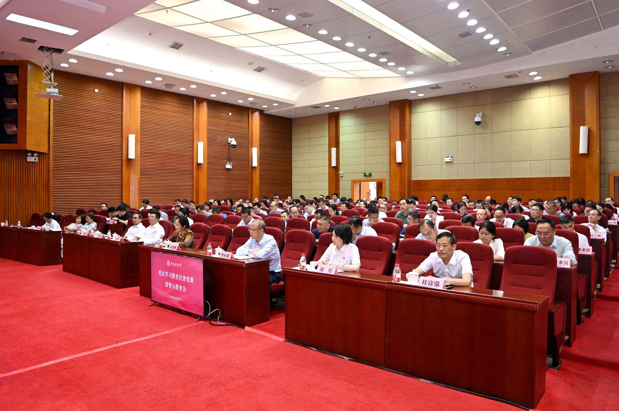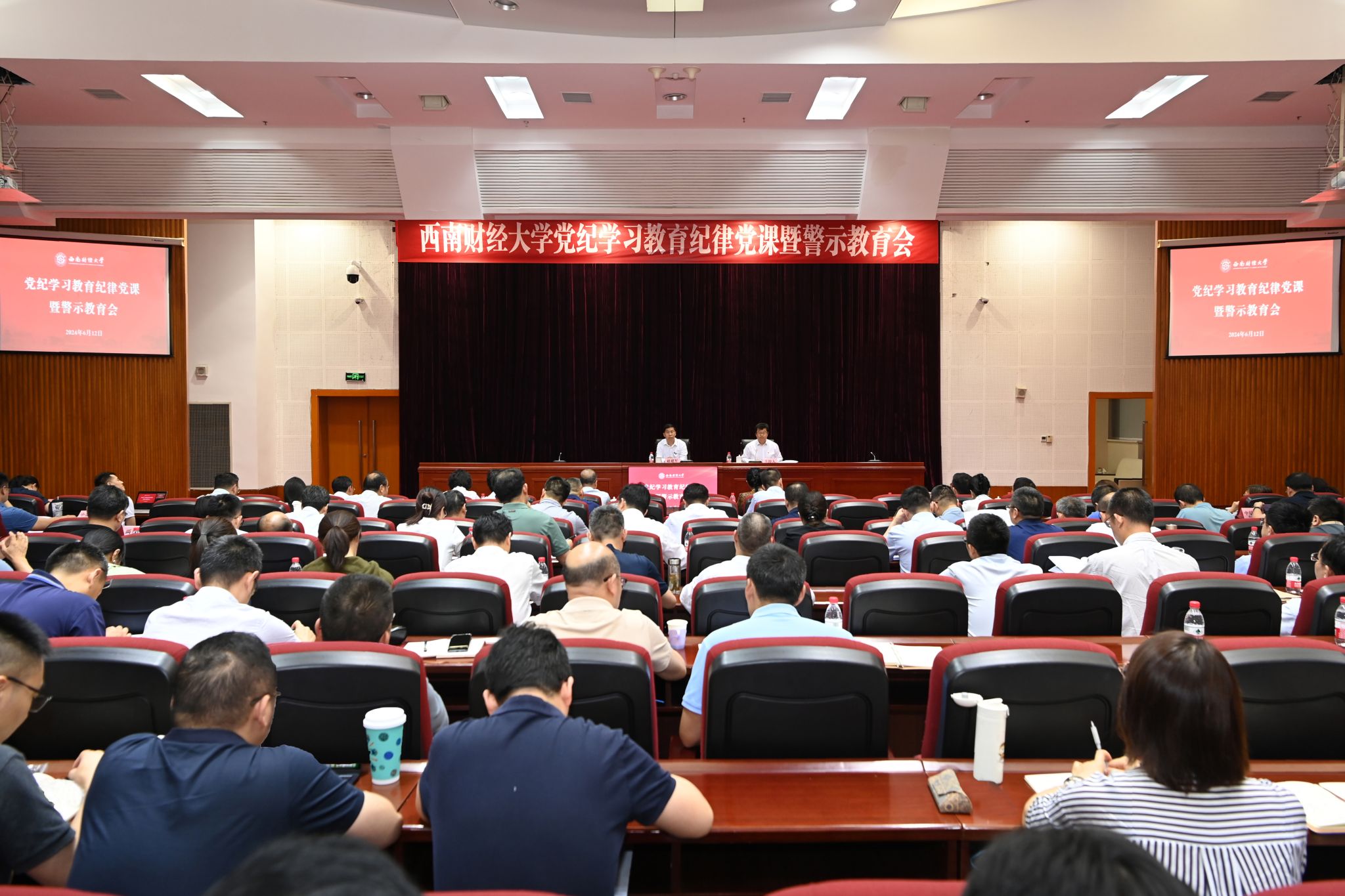6月12日,学校在腾骧楼137会议室举行党纪学习教育专题党课暨警示教育会。教育部直属高校党建工作联络员朱健梅到会指导,党委书记赵建军讲授专题党课。党委副书记、校长李永强,党委副书记、纪委书记孙殿明,党委副书记谢红,党委常委、副校长尹庆双、桂富强、李志生,学校党委委员、纪委委员,全体中层干部,特聘组织员,教师支部书记代表,学生支部书记代表,学校党纪学习教育工作专班成员参加会议。