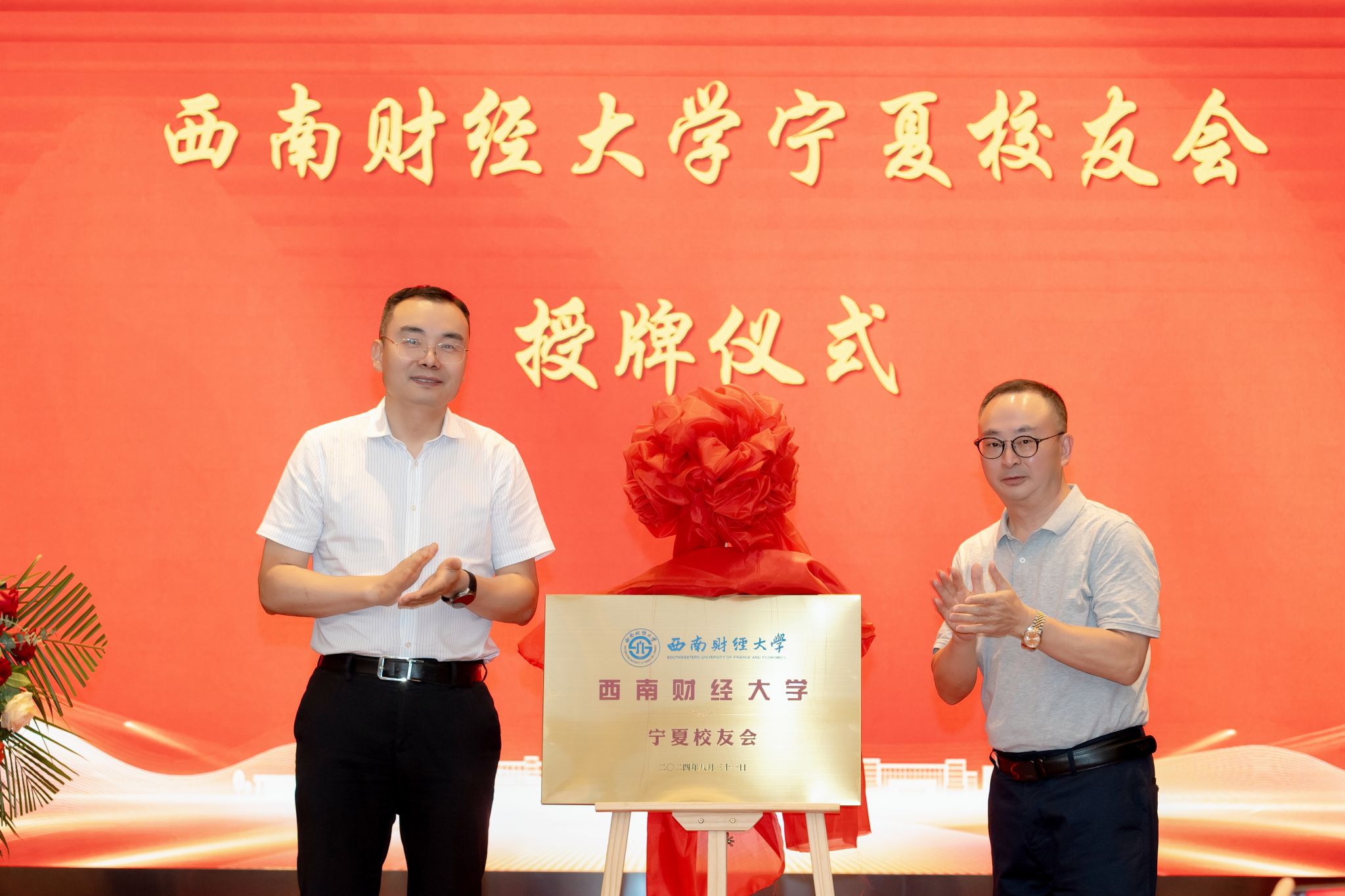 会上宣读了《关于成立西南财经大学宁夏校友会的批复》和宁夏校友会第一届理事会成员名单,举行了宁夏校友会揭牌仪式,为宁夏校友会第一届理事会成员颁发聘书、赠送纪念品。