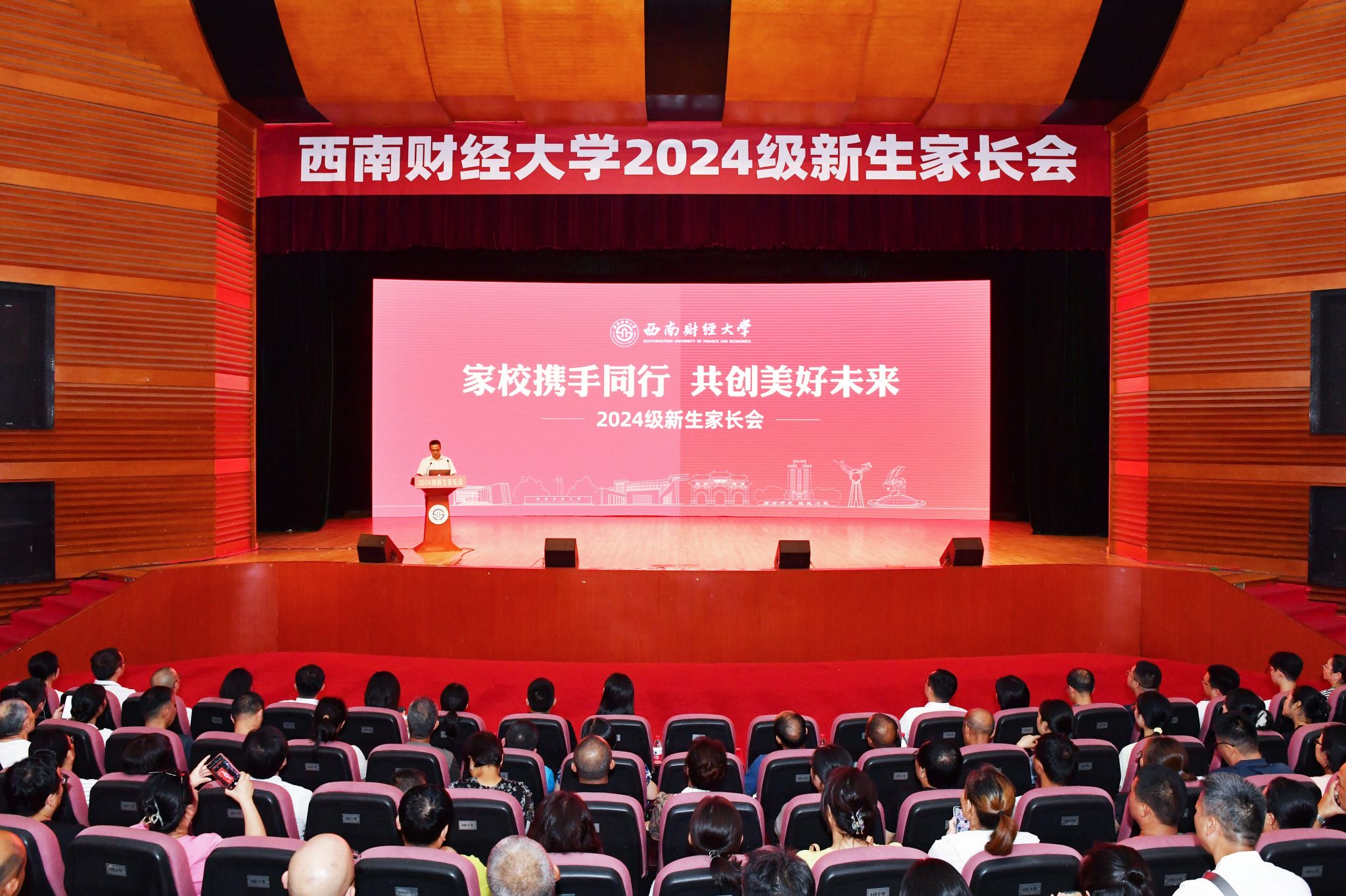 9月4日下午,西南财经大学2024级新生家长会在柳林校区学生活动中心800人厅举行。学校党委常委、副校长李志生出席会议,相关职能部门负责人及千余名新生家长参会。学生工作部部长梁婷主持会议。