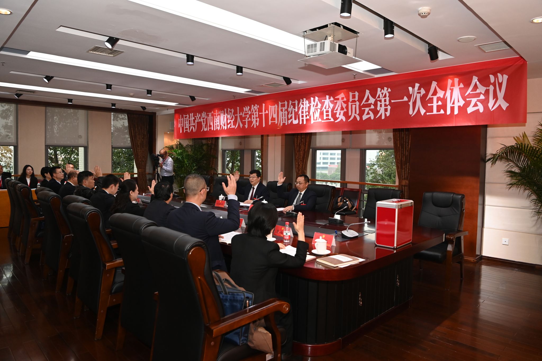 2024年12月27日下午,中国共产党西南财经大学第十四届纪律检查委员会举行第一次全体会议。第十四届纪律检查委员会全体委员参加会议。孙殿明主持会议。