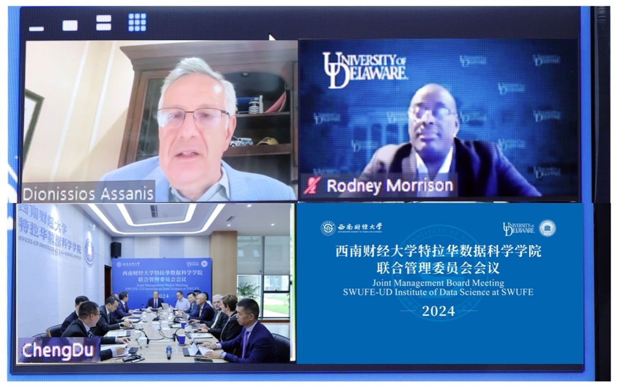 Dennis Assanis在线发表致辞,表示特拉华大学高度重视与西南财经大学的合作关系,两校多年来友好合作成果丰硕,特拉华数据科学学院已成为特拉华大学国际教育项目的示范区。他对学院首届毕业生取得的优秀升学质量表示祝贺,期待两校进一步开展更深层次的合作。