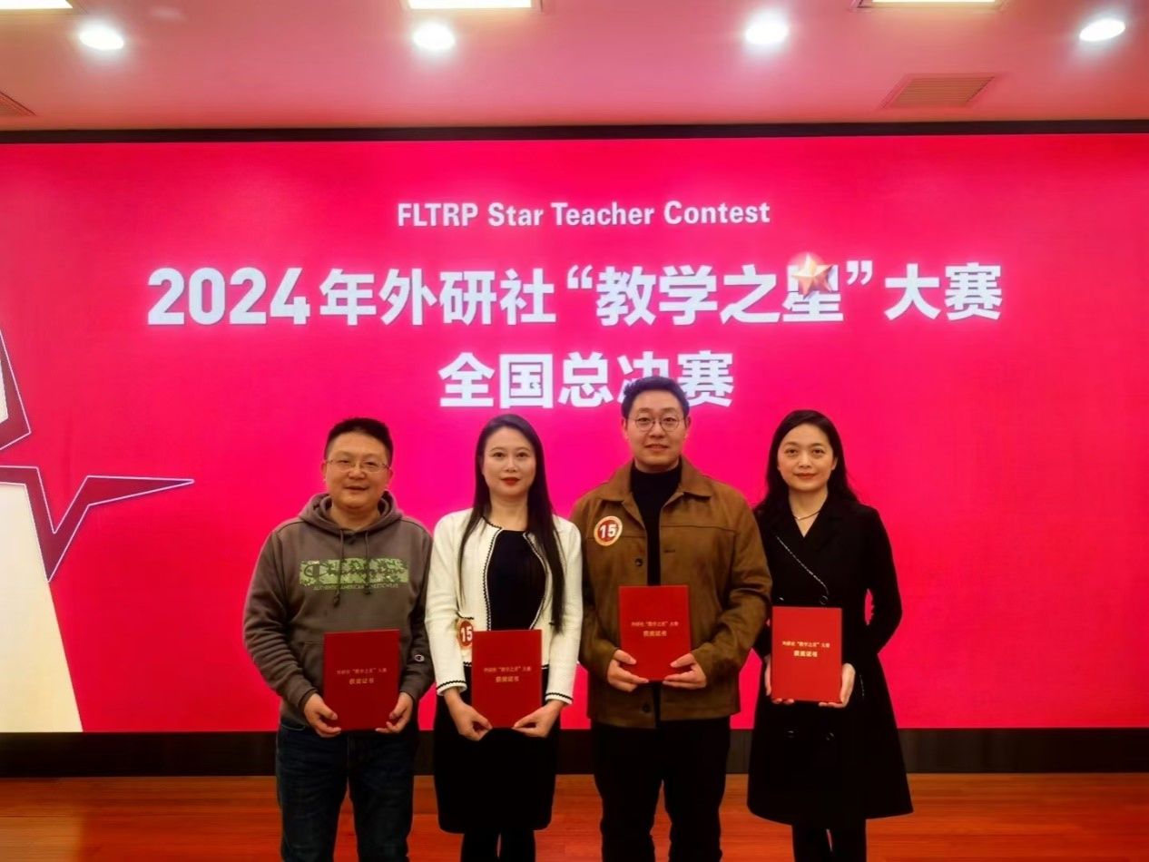 近日,2024年外研社“教学之星”大赛全国总决赛在北京举办。经过层层角逐,共有19组参赛教师团队从800余组团队中脱颖而出进入全国总决赛,8万余位教师观摩交流,互学互鉴,共探数智赋能外语教学有效路径,共享国际化人才培养创新思路。我校外国语学院黄志华老师团队最终在总决赛的巅峰对决中荣获特等奖(季军),这是我校在本项比赛中获得的历史最好成绩。